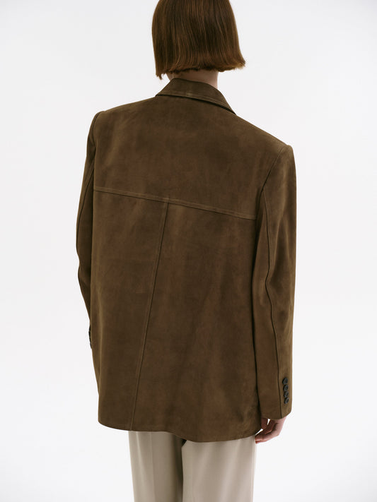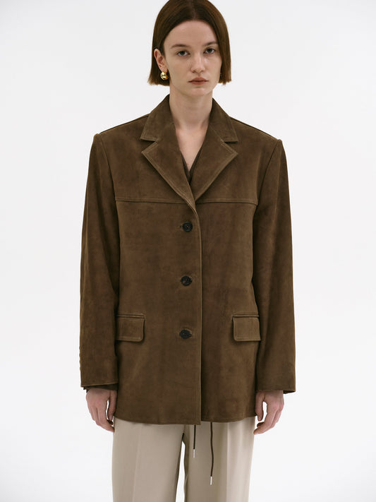 Yumuşak, orta kalınlıkta kuzu derisinden, rahat ve kalça hizasında bir silüete sahip, dikilmiştir. Dolgulu omuzlar ve tonlu dikişlerle çerçevelenmiştir. Ön kapaklı cepleri ve kaplumbağa düğmeli kapanışları zamansız bir çekicilik sunar. Tamamen astarlıdır.