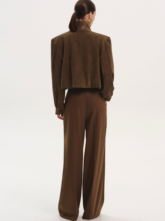 Lalisa Ruched Suede Bomber, Burnt Umber